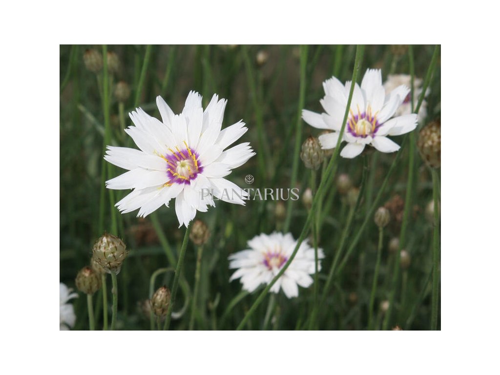 Catananche caerulea, česky poblekla modrá, druh 'Alba' je trsnatá trvalka, která na první pohled může vypadat jako chrpa, ale její bílé péřové květy vydrží déle a jsou vynikající na sušení a řezání.